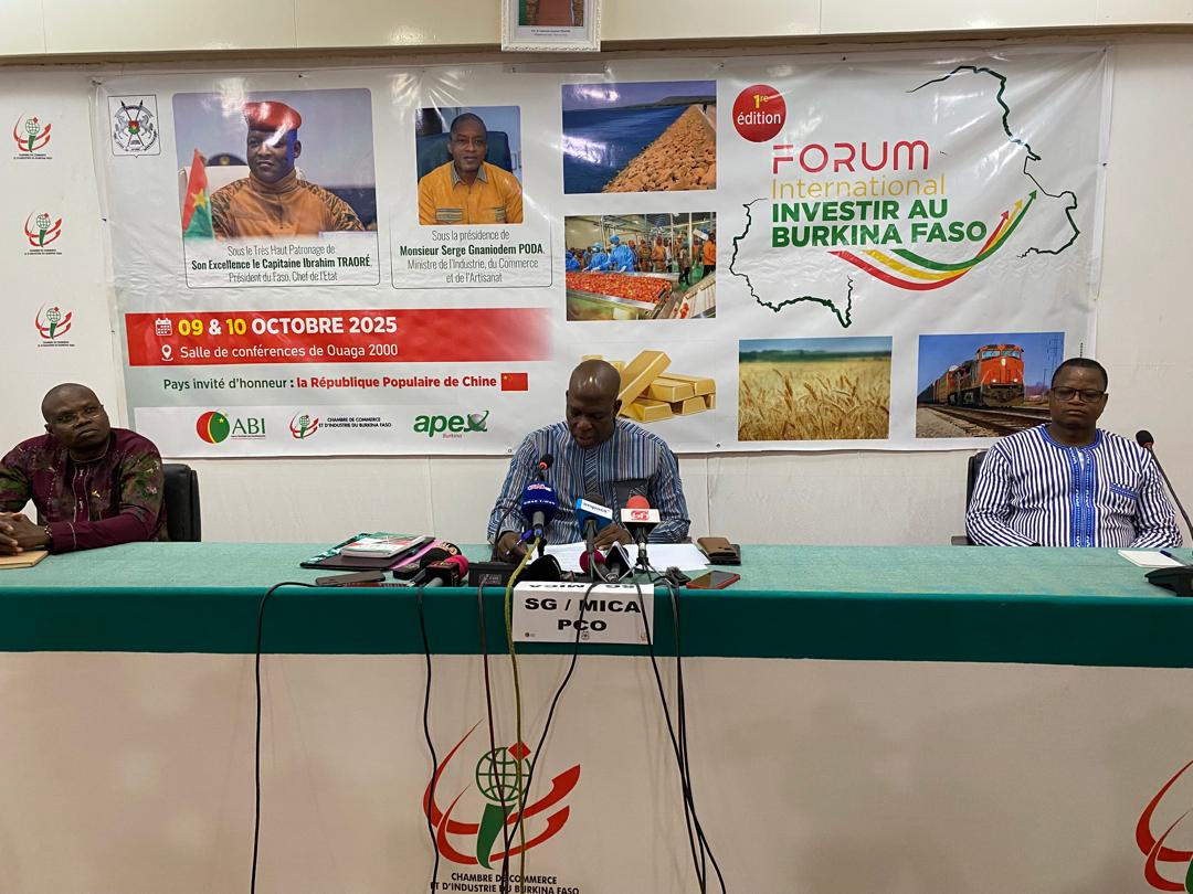La première édition du Forum international « Investir au Burkina Faso (FIIB) » va se dérouler les 9 et 10 octobre 2025. Cette activité est organisée par le ministère de l’Industrie, du Commerce et de l’Artisanat, à travers l’Agence burkinabè des investissements (ABI), en partenariat avec la Chambre de commerce et d’industrie du Burkina Faso (CCI-BF) et l’Agence pour la promotion des exportations du Burkina (APEX-B). Une conférence de presse a été organisée pour déballer les objectifs du forum ainsi que le programme. C’était le samedi 4 octobre 2025, à Ouagadougou.