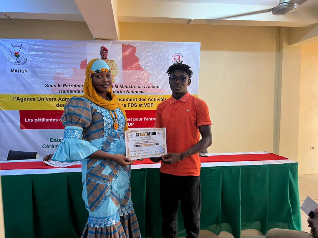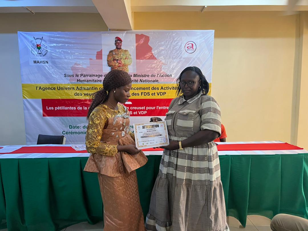 Placée sous le parrainage du ministère de l’Action humanitaire et de la Solidarité nationale, cette initiative s’est tenue sous le thème : « Les pétillantes de la communication : un creuset pour l’entrepreneuriat des veuves des FDS et VDP ». Les activités se sont déroulées du 23 au 30 décembre 2025 et ont officiellement pris fin le 2 janvier 2026 avec la remise des attestations aux bénéficiaires.