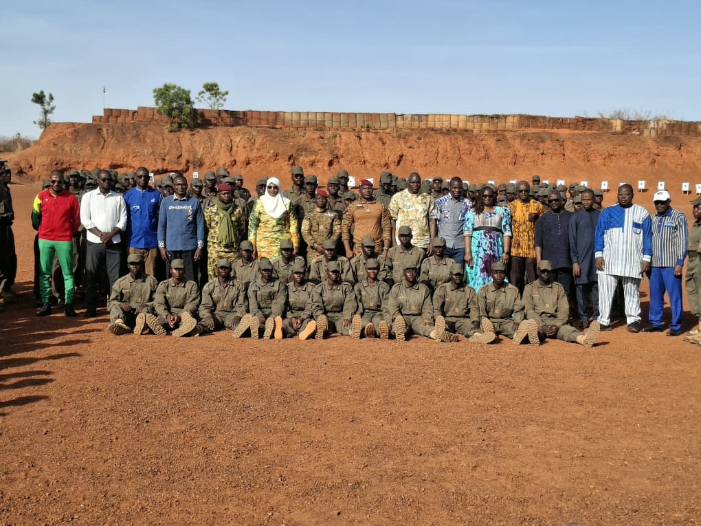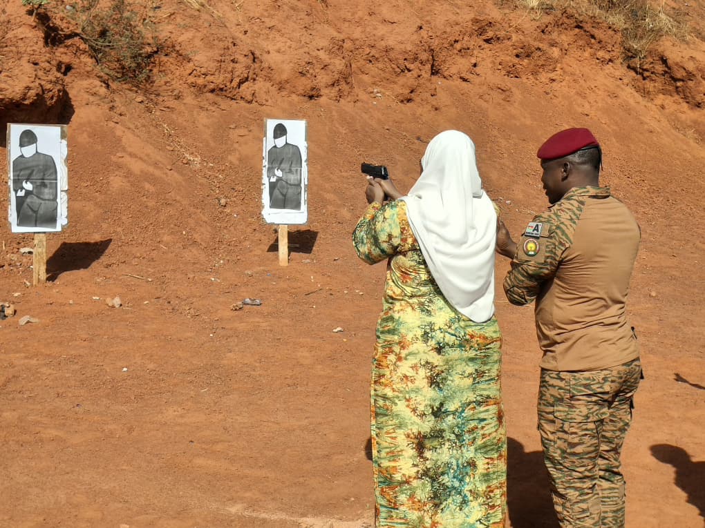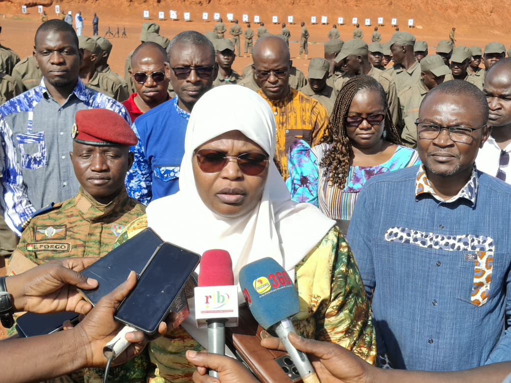 Le ministre Aminata Zerbo/Sabané participe à la séance de tir aux côtés des recrues