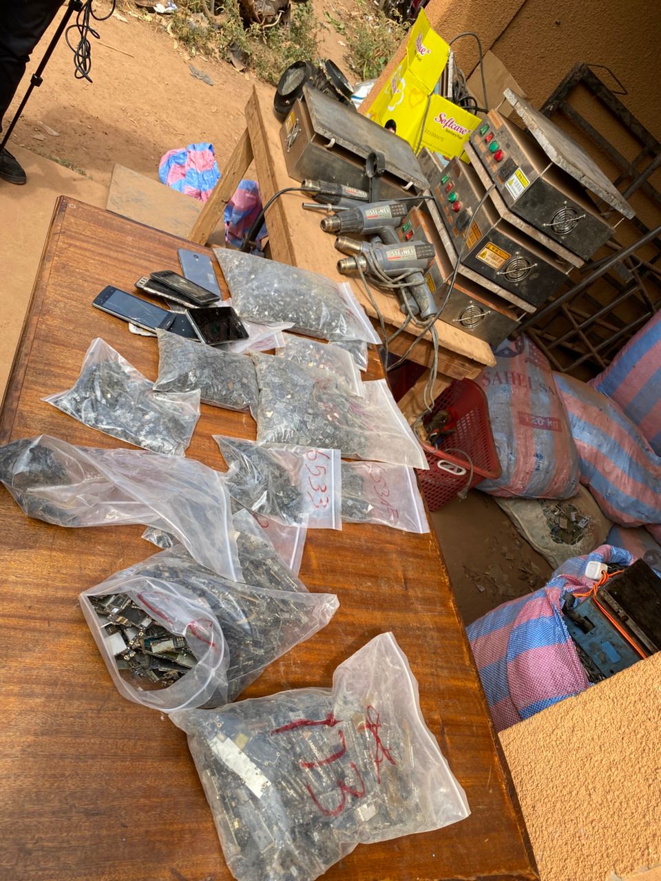Sur place, les enquêteurs ont découvert que les auteurs présumés chauffaient des téléphones usagés dans des fours artisanaux afin d’en extraire les métaux précieux. Cette activité dangereuse pour l’environnement et la santé était menée sans la moindre autorisation administrative et en plein milieu d’une zone d’habitation.