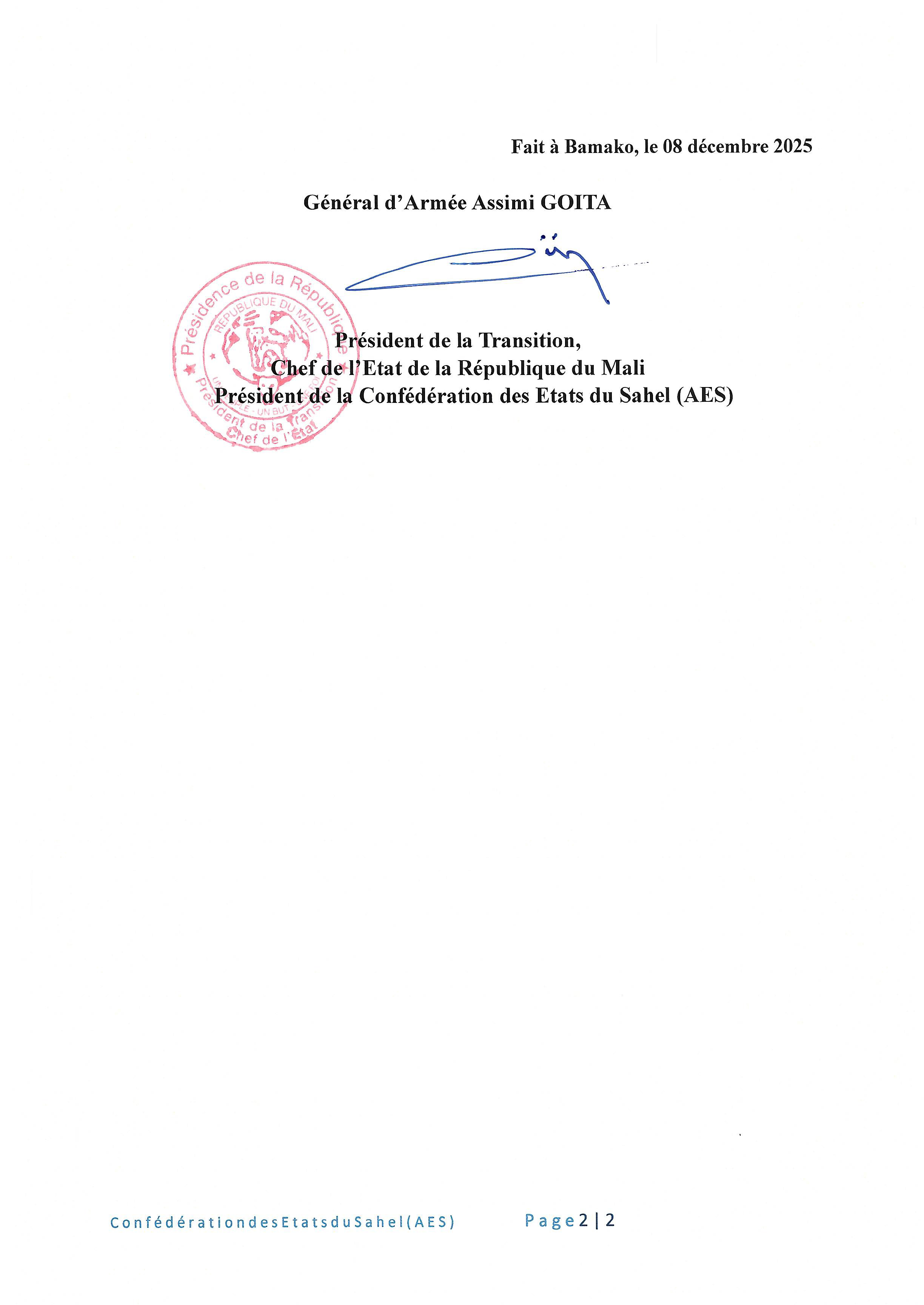 L’AES a dénoncé une violation grave et inamicale de son espace aérien, contraire au droit international, et réaffirmé sa détermination à protéger la souveraineté et l’intégrité de ses États membres. Les défenses aériennes confédérales ont été placées en alerte maximale, conformément à la déclaration des Chefs d’État du 22 décembre 2024, avec autorisation de neutraliser tout aéronef non autorisé.